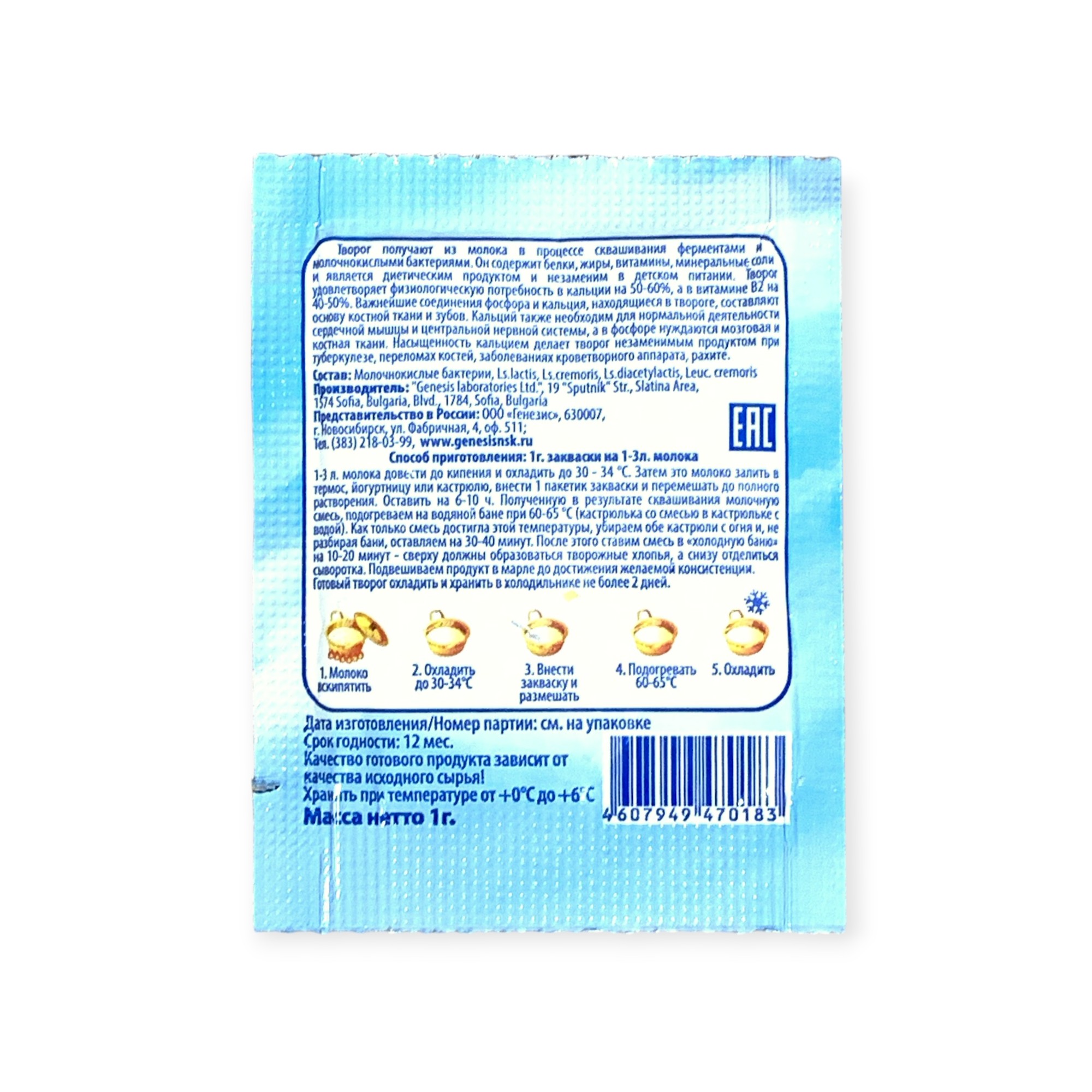 Закваска Творожок Genesis, 1 пакет от 100 руб. с доставкой. Пункт выдачи в Мелеузе. Интернет магазин по сыроделию. Всё всегда в наличии.